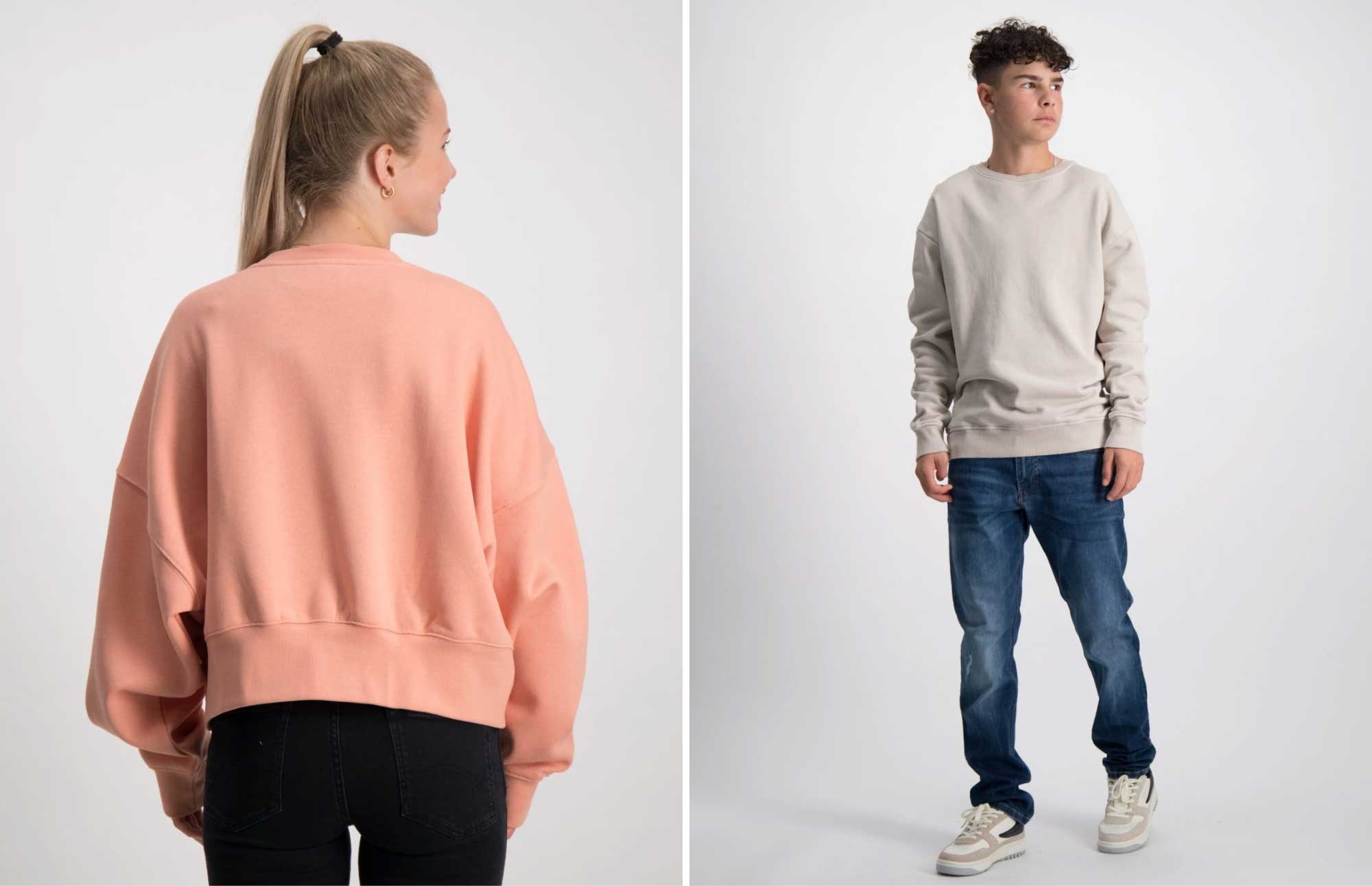 Strikkede sweatshirts er altid dejlige. Oversized sweatshirts skal være store, men behøver ikke at være lange. I stedet bør de være korte for at understrege bredden. En boksformet pasform er lige tilpas. Halsen kan være almindelig rund, åbnes med en halv lynlås med snor eller være forsynet med en overdrevent stor rullekrave.